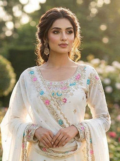 20% OFFCHINON FABRIC WHITE ANARKALI SET