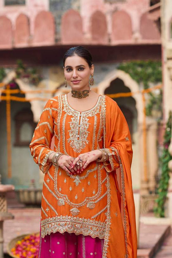 ORANGE SHARARA SET WITH DUPATTA SET OF 3