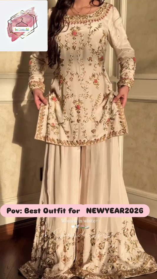 OFF WHITE- IVORY SHEESHMAHAL SHARARA SET