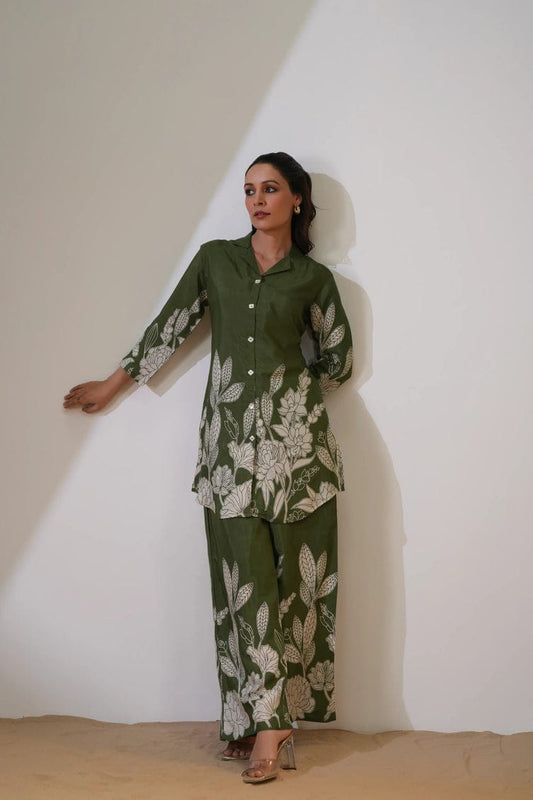 OLIVIYA GREEN FLORAL PRINTED CO-ORD SET