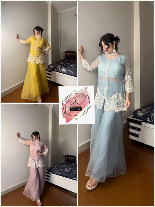 HALTER NECK KURTA AND PLAZZO SET WITH DUPATTA (3 New Colors added for Wedding and Occasion)