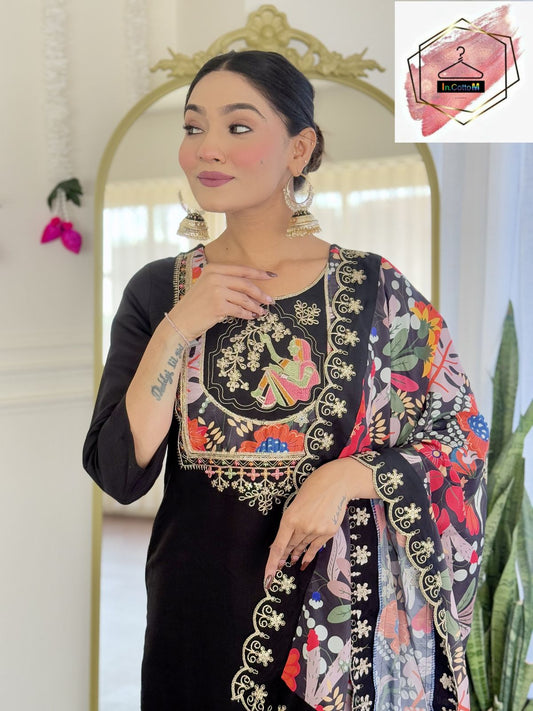 SHIMAR DESIGNER - BLACK GEORGETTE EMBROIDERY WORK SHARARA SUIT