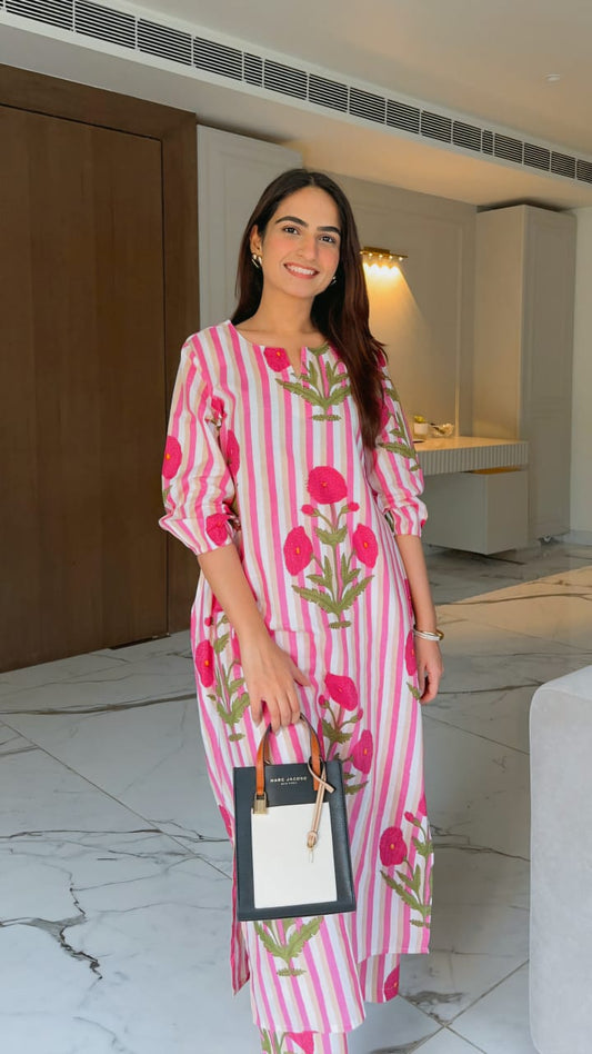 LA ROSE HAND BLOCK COTTON PRINTED CO-ORD SET