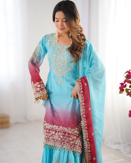 SKYISH BLUE ELEGANT SHARARA WITH RIVER MOTI WORK - SET OF 3