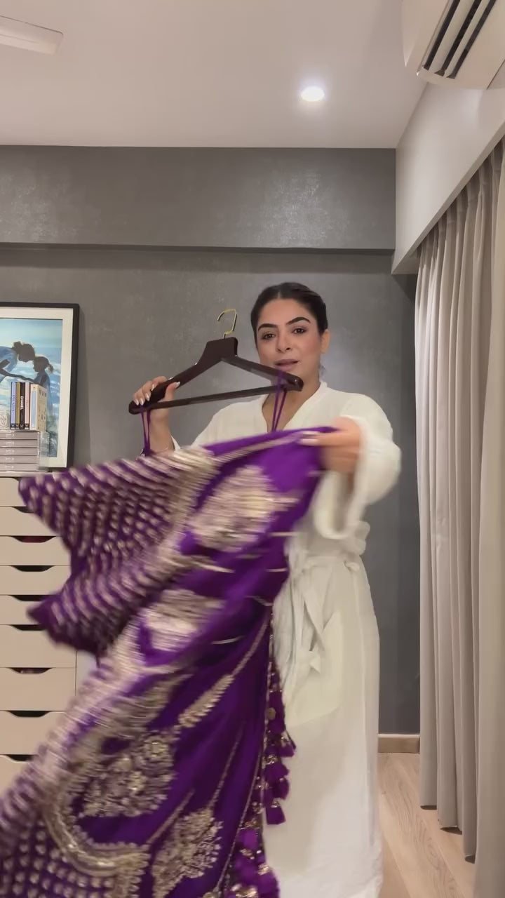 WOMEN'S PURPLE CHINON SILK EMBROIDERY SEQUENCE WORK LEHENGA CHOLI