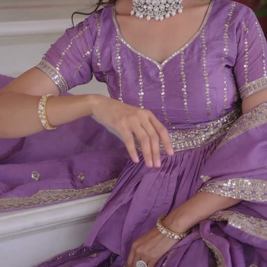 LAVENDER - GOLD CRUSH LEHENGA CHOLI WITH MULTI THREAD EMBROIDERY ZARI SEQUENCE WORK