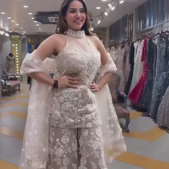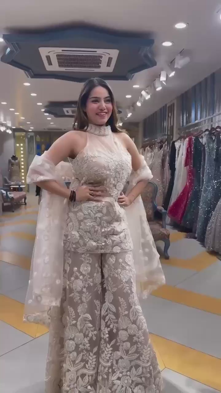 HALTER NECK KURTA AND PLAZZO SET WITH DUPATTA (3 New Colors added for Wedding and Occasion)