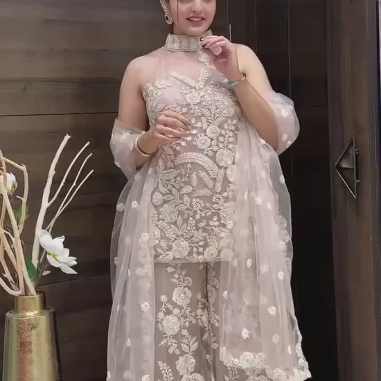 HULTER NECK KURTA AND PLAZZO SET WITH DUPATTA