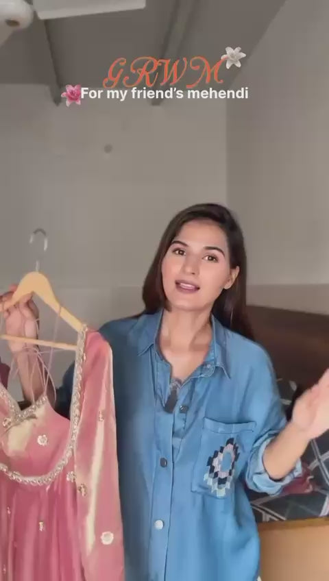 PREMIUM FENDY SILK ANARAKLI SUIT SET IN PINK