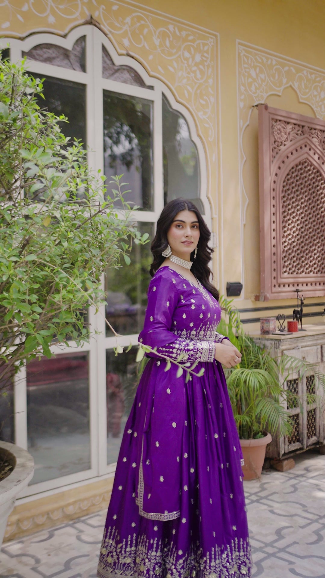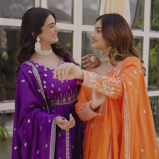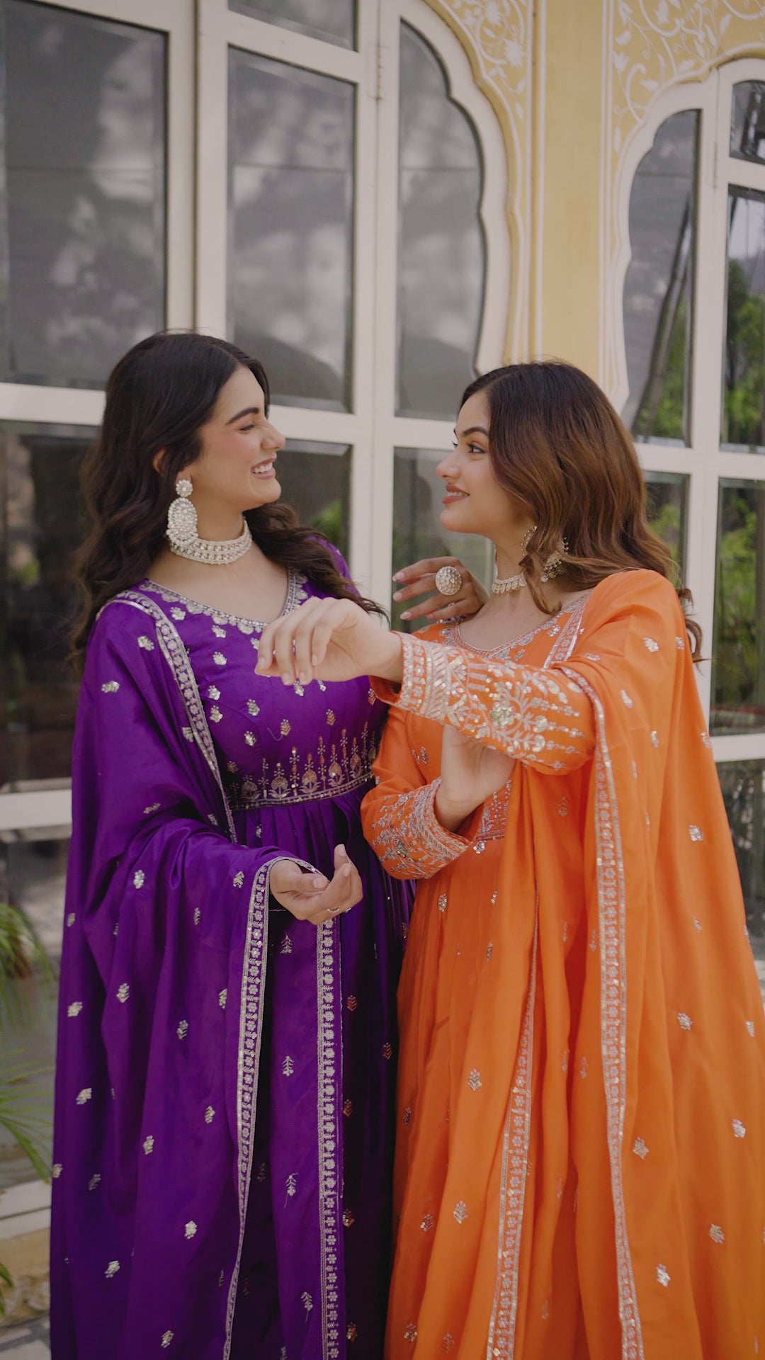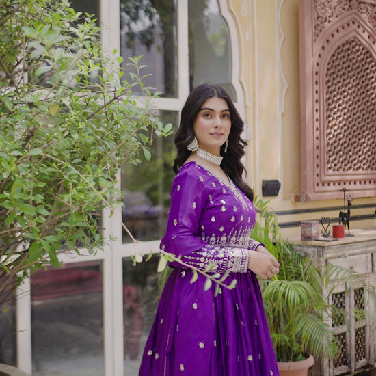 MAHARANI ANARKALI GOWN WITH HEAVY EMBROIDERY WORK - SET OF 3