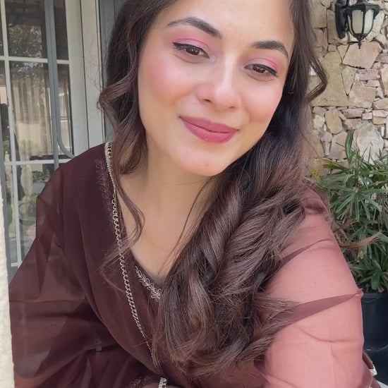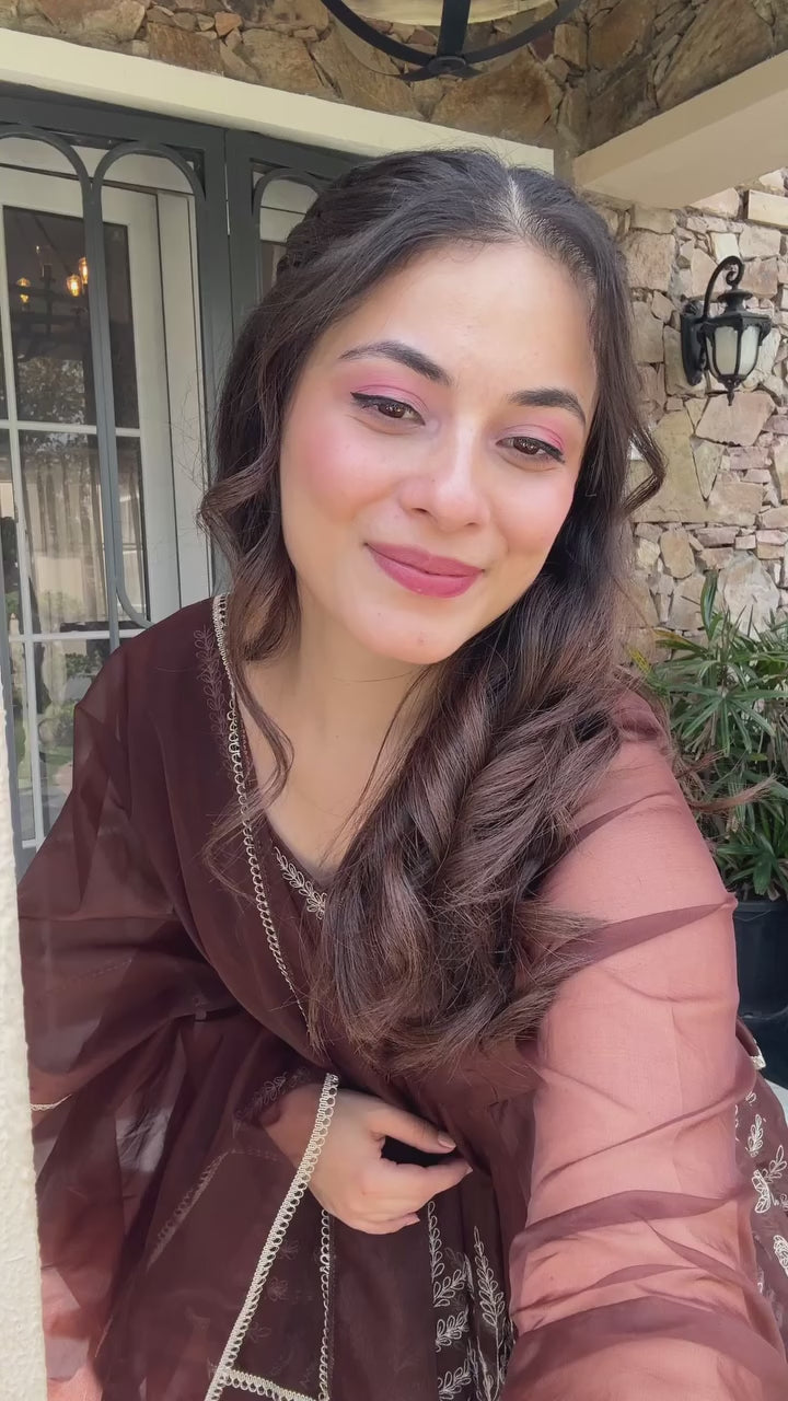 BROWN STAR GEORGETTE CODDING WORK SALWAR SUIT (FULLY STTITCHED)